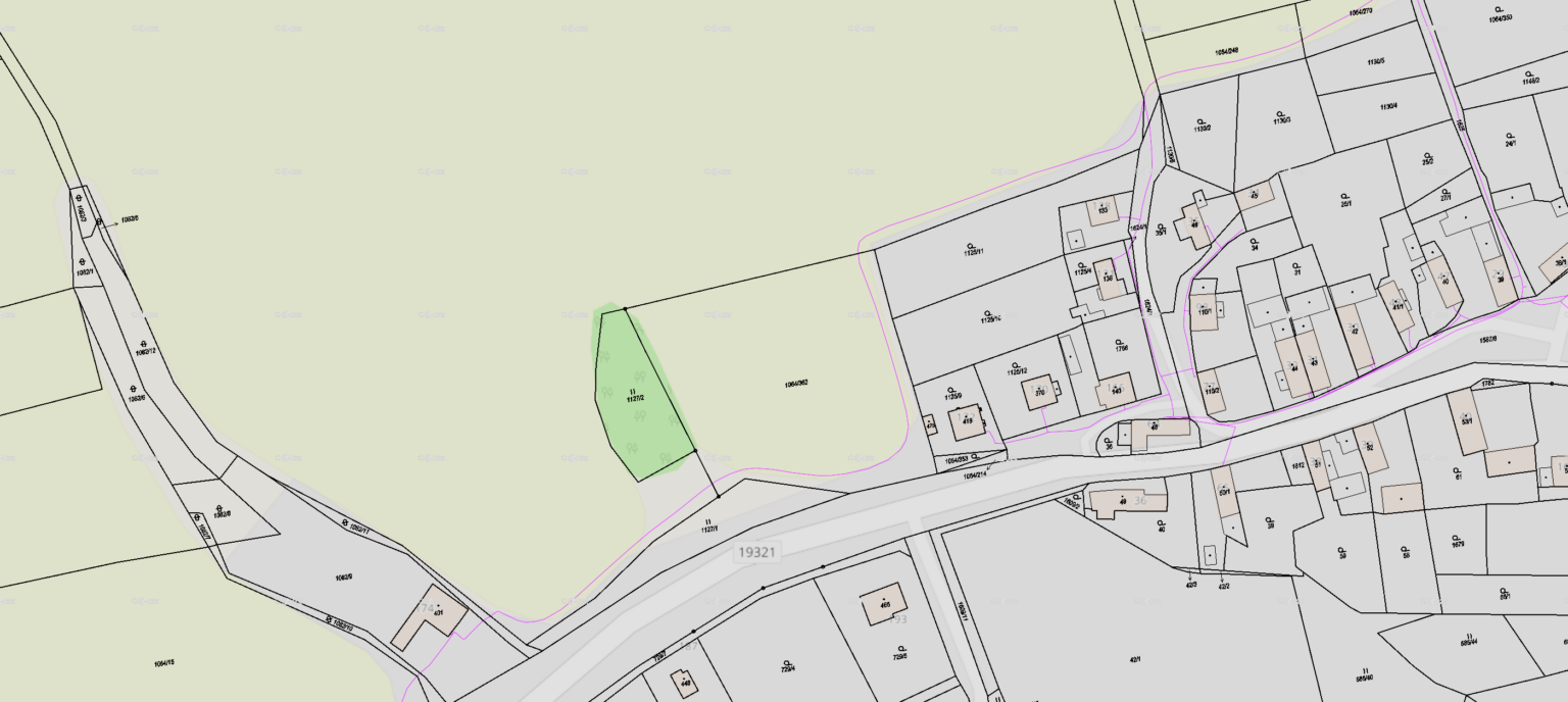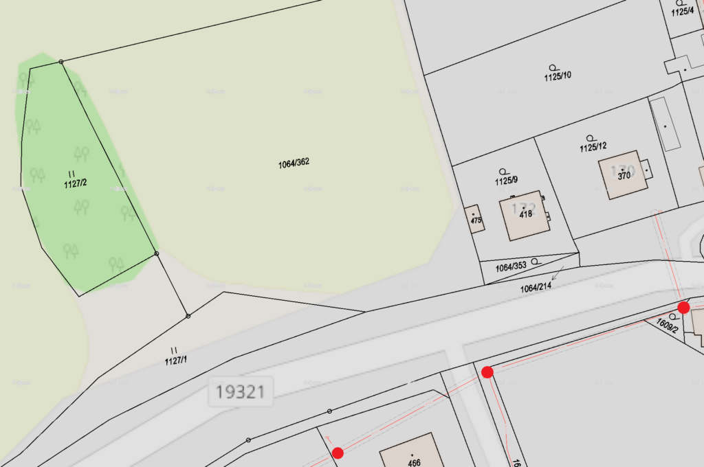 je umístěn pod prodávanými pozemky v hlavní komunikaci.