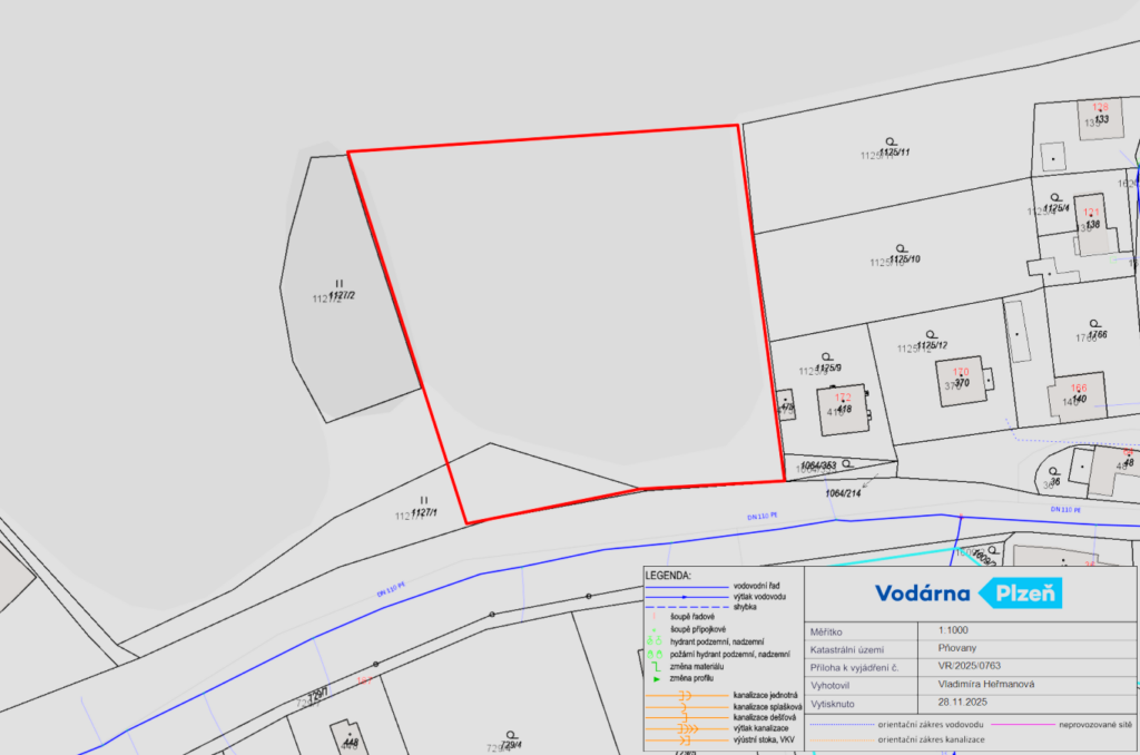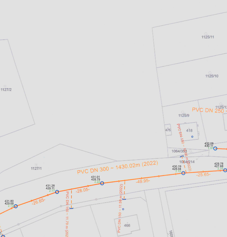 Výkresové podklady aktuálních pozic inženýrských sítí.